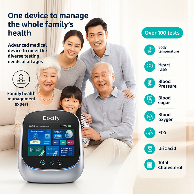 Docify™ AI Health Hub revolutionizes the way families monitor and manage their well-being. By merging artificial intelligence, precision health sensors, and real-time analytics.